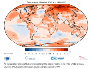 Commenting on the WMO’s announcement, United Nations Secretary-General António Guterres stated “The confirmation… that 2020 was one of the warmest years on record is yet another stark reminder of the relentless pace of climate change, which is destroying lives and livelihoods across our planet. Today, we are at 1.2 degrees of warming and already witnessing unprecedented weather extremes in every region and on every continent. We are headed for a catastrophic temperature rise of 3 to 5 degrees Celsius this century. Making peace with nature is the defining task of the 21st century. It must be the top priority for everyone, everywhere.”