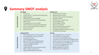 These various analyses built up to a classical ‘SWOT’ exercise exploring IFRF’s Strengths and Weaknesses, and also Opportunities and Threats, summarised in the chart below: