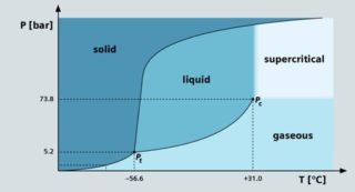 CO2 is supercritical at pressures about 73.8 bar and temperatures above 31°C