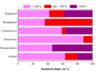 Sectoral shares of waste heat distribution on a global basis (source Liu et al, 2020)