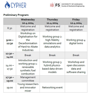 It will be an integral part of the wider CYPHER COST Action First General Meeting to take place in Ljubljana from 10-12 April 2024. This wider event aims to foster collaborative research and knowledge exchange in the field of Renewable Synthetic Fuel combustion. The meeting will bring together a diverse network of researchers, entrepreneurs, policymakers, and industry partners with the common goal of advancing innovative solutions for the decarbonisation of Energy-Intensive Industries in Europe and beyond.